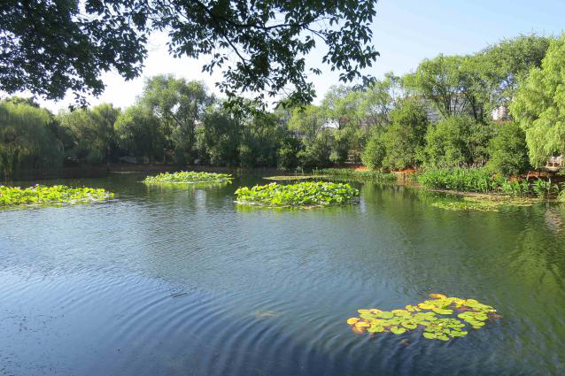 圖:如今的三湖公園垂柳依依、湖水清澈