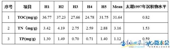 濱湖湖底底泥有機質含量平均值、TN含量平均值、TP含量平均值分別是太湖1997年沉積物水平的39倍、2倍、2倍,濱湖內源負荷嚴重。